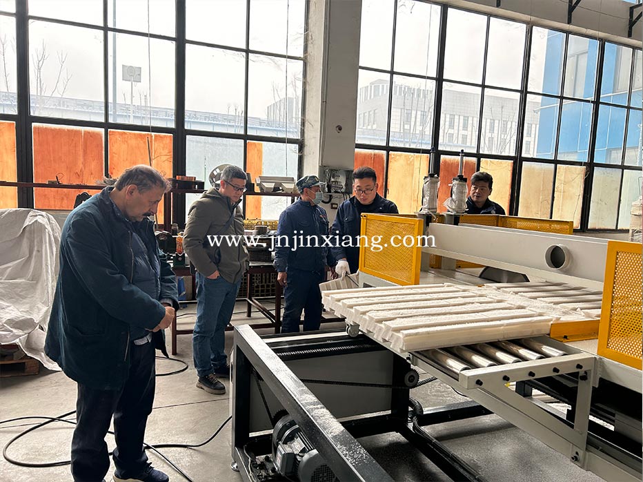 臨近春節(jié),工廠依然在忙碌的趕工期,上周五,公司又迎來了來自阿曼的客戶,客戶在我公司購買了XPS擠塑板開槽機(jī),驗(yàn)收設(shè)備的同時(shí)客戶又參觀工廠并表達(dá)了合作意向。