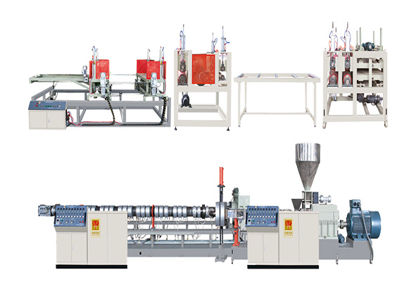 金象改進(jìn)型擠塑板生產(chǎn)線,第一組機(jī)組采用平行雙螺桿擠出機(jī),雙螺桿擠出機(jī)特有的結(jié)構(gòu),將原料充分混合,螺桿轉(zhuǎn)速高,物料停留時間短。