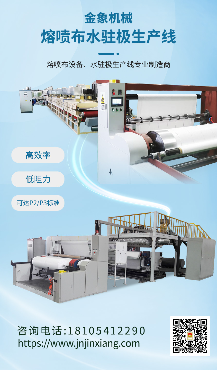 濟(jì)南金象機(jī)械設(shè)備有限公司是專業(yè)熔噴布設(shè)備,水駐極設(shè)備制造商,為客戶提供完整的熔噴布全自動(dòng)生產(chǎn)線解決方案。我司生產(chǎn)的水駐極設(shè)備處理后的熔噴布可以滿足高效低阻要求,使無紡布通透性更好,駐極體穩(wěn)定,吸附力強(qiáng),低阻力下,可以達(dá)到很好的過濾效率,滿足FFP2、P3+ / FK94 +等標(biāo)準(zhǔn)。