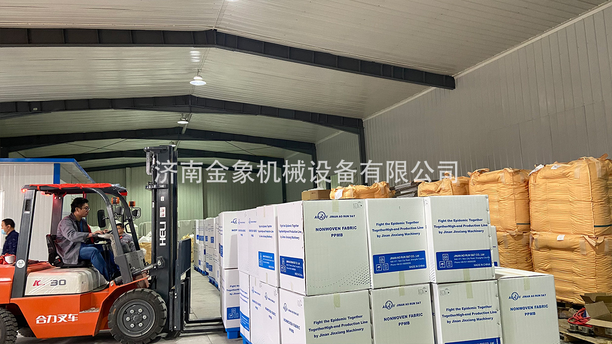 作為國(guó)內(nèi)水駐極熔噴布供應(yīng)商代表之一,金象機(jī)械生產(chǎn)研發(fā)的水駐極熔噴布成功銷往韓國(guó),為當(dāng)?shù)胤酪呶镔Y生產(chǎn)提供了幫助,以下為發(fā)貨現(xiàn)場(chǎng):